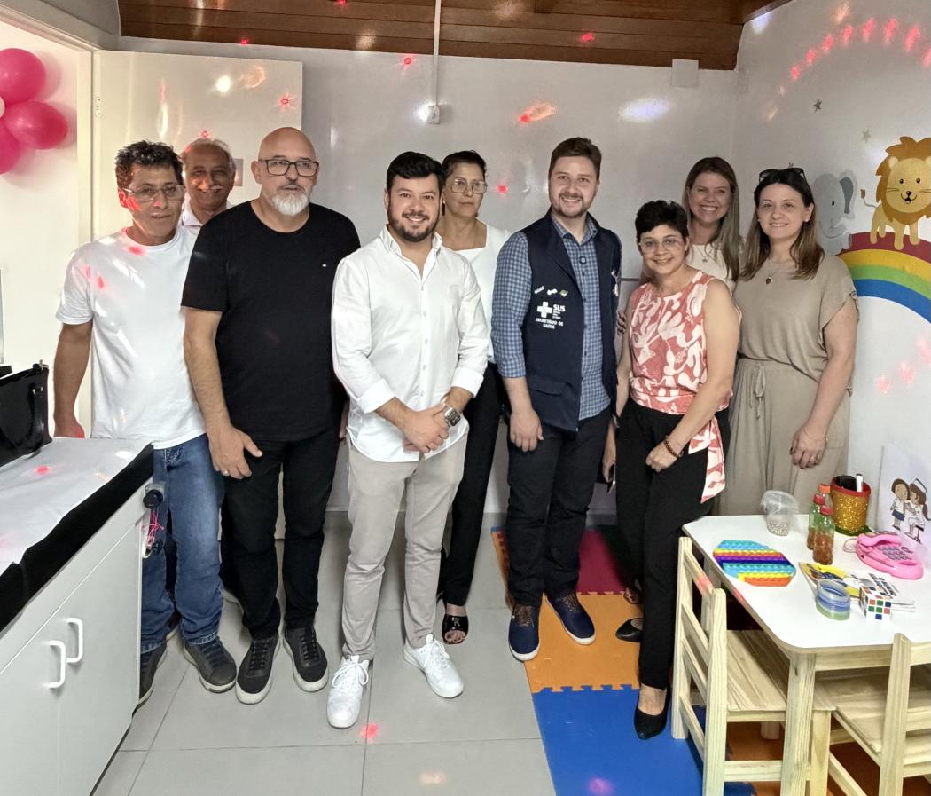 A Prefeitura de Estância Velha, por meio da Secretaria de Saúde (SMS), lançou nesta quinta-feira, 23 de outubro, o Projeto “Acolher, Brincar e Vacinar”, direcionado ao acolhimento de crianças e adolescentes suscetíveis a crises sensoriais e pacientes neurodiversos (transtorno espectro autista, transtorno de déficit de atenção e hiperatividade, entre outros). O projeto piloto foi colocado em prática no Posto de Saúde do Centro (Rua Hugo Metz, 71), e os resultados estão sendo muito positivos, conforme descreve a coordenadora da Vigilância em Saúde, Eliane Fleck. “Baseado no efeito muito positivo desta primeira experiência, a ideia é ampliar o projeto para todos os Postos de Saúde do Município”, destaca Eliane. “Na próxima semana já estaremos instalando a Sala Sensorial no Posto do Floresta, e assim sucessivamente em todos os Postos do Município”, reforçou o prefeito Diego Francisco.