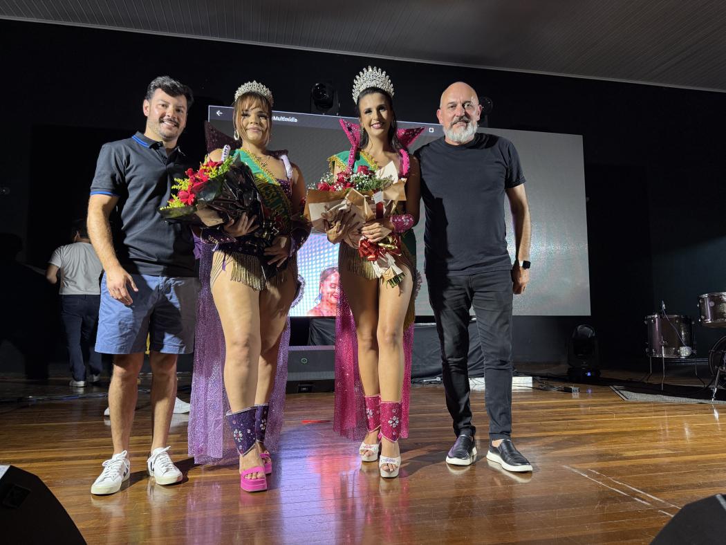 Tainá Campagnoni e Evelim Ferraes se despediram oficialmente da função de Rainha e Princesa após seis anos representando a cultura local. Em um discurso emocionado, agradeceram à comunidade e desejaram sucesso às novas representantes. “Que vocês liderem com o coração, ousem com sabedoria e jamais esqueçam a força que há em unir mulheres em um só propósito de alegria e representatividade”, disse Tainá dirigindo-se a nova Corte. Tainá e Evelim receberam flores e homenagens da Administração Municipal como forma de reconhecimento.