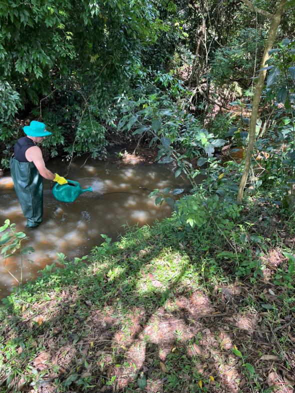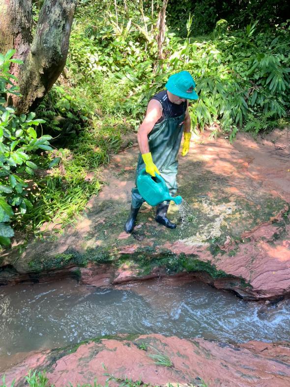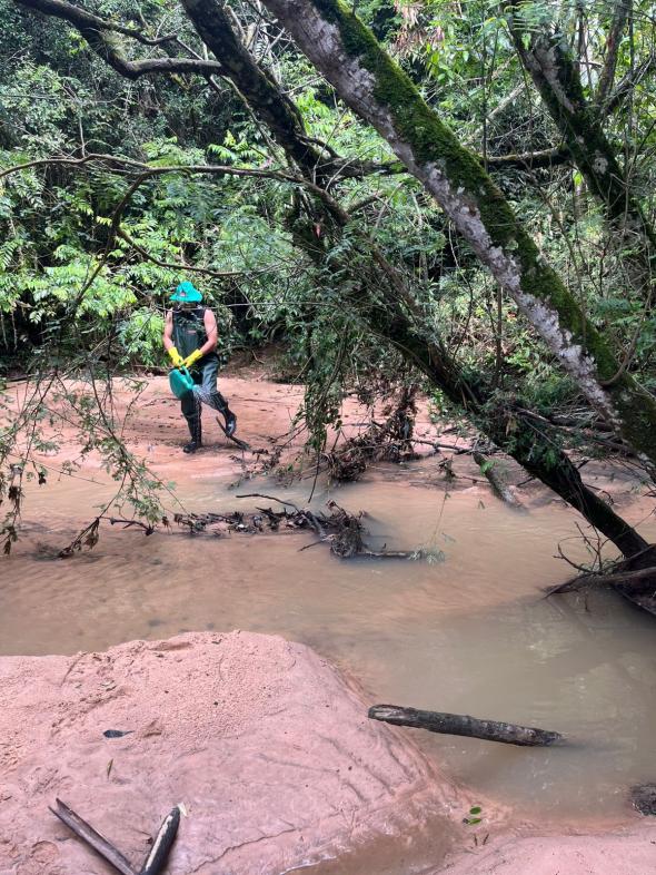 O trabalho realizado hoje pelos agentes vai além da aplicação técnica. Eles percorrem áreas de difícil acesso, monitoram a vazão das águas e identificam possíveis ocorrências. “Com a aplicação do BTI, a cidade reforça seu cinturão de proteção contra as arboviroses, garantindo um verão mais seguro para todos”, destaca a bióloga da Visa, Karen Krause. Participaram da ação agentes de endemias (aplicando o BTI) e a bióloga, que realizou o acompanhamento técnico.