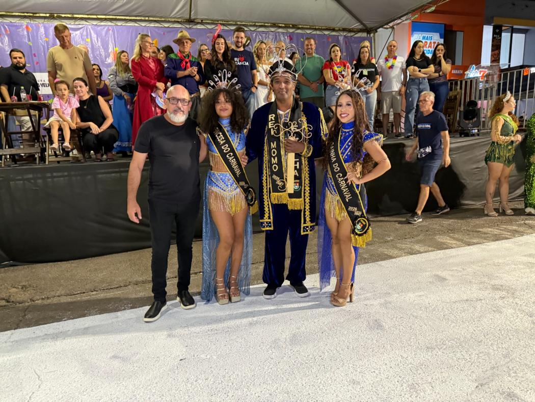 A programação começou com a apresentação da nova corte do Carnaval, formada pela Rainha Isabella Klein, pela princesa Maria Fernanda Rosas Rosas Marques e pelo Rei Momo Edson Lobão. O trio encantou o público com carisma e brilho. No início da festa, o prefeito em exercício, Airton Haag, realizou a simbólica entrega da chave da cidade ao Rei Momo, marcando oficialmente a abertura da folia. “Hoje, Estância Velha demonstra mais uma vez que valoriza suas tradições e mantém o Carnaval vivo na comunidade. É uma alegria ver tantas famílias reunidas celebrando nossa cultura”, afirmou Haag. Em seguida, ocorreu o tradicional desfile das comitivas, com os Reis do Festival de Kerb, o grupo de Danças Deutsche Seele e a Bandinha Municipal, tocando clássicas marchinhas de carnaval.