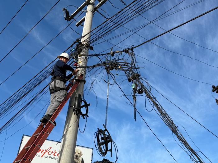 A ação tipo “mutirão” já aconteceu nos anos de 2023 e 2024, quando vários trechos na avenida Brasil, rua Aimoré, avenida Sete de Setembro, e outras vias passaram pela retirada dos fios excedentes. “Infelizmente com a chuva de maio e a enchente tivemos que suspender as operações no segundo semestre de 2024”, explica o coordenador da Defesa Civil, Kairo Campos. Desde o período de operações suspensas em trechos determinados, a Defesa Civil mantém um grupo de WhatsApp com representantes das operadoras de internet, onde são repassadas as ocorrências urgentes de fios caídos para a rápida remoção.