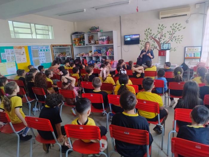 A atividade aconteceu na Escola de Ensino Fundamental Presidente Kennedy, no Lago Azul. A veterinária Vanuza Barcellos falou sobre a importância do cuidado com os animais. O VETensina tem como objetivo conscientizar a população, especialmente crianças e jovens, sobre a importância do respeito, cuidado e proteção aos animais, abordando temas como o que caracteriza maus-tratos, como denunciá-los, a importância da adoção responsável, da castração e do bem-estar animal. “Essa iniciativa quer formar cidadãos mais empáticos e responsáveis, promovendo uma sociedade mais justa e compassiva com todos os seres”, salienta Vanuza. Na ação também foram distribuídos material impresso educativo com cuidados e número para denúncias de maus tratos.