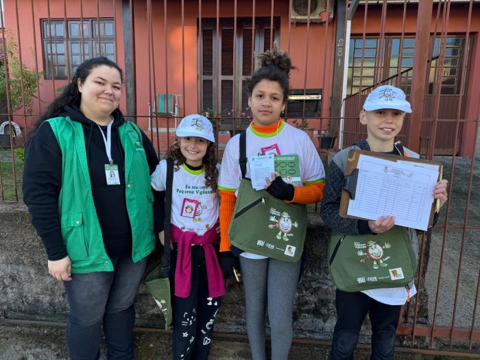 A EMEF Presidente Kennedy está engajada no projeto de conscientização “Pequenos Vigilantes”, que tem como foco o combate à proliferação do mosquito Aedes aegypti, o transmissor da dengue. Na sexta-feira, 13 de junho, os alunos participaram de uma atividade prática junto à equipe de Agentes de Combate a Endemias de Estância Velha. Durante a ação, eles acompanharam visitas a residências, observaram a identificação de possíveis focos do mosquito e conheceram de perto as ferramentas e a rotina de trabalho dos profissionais envolvidos.