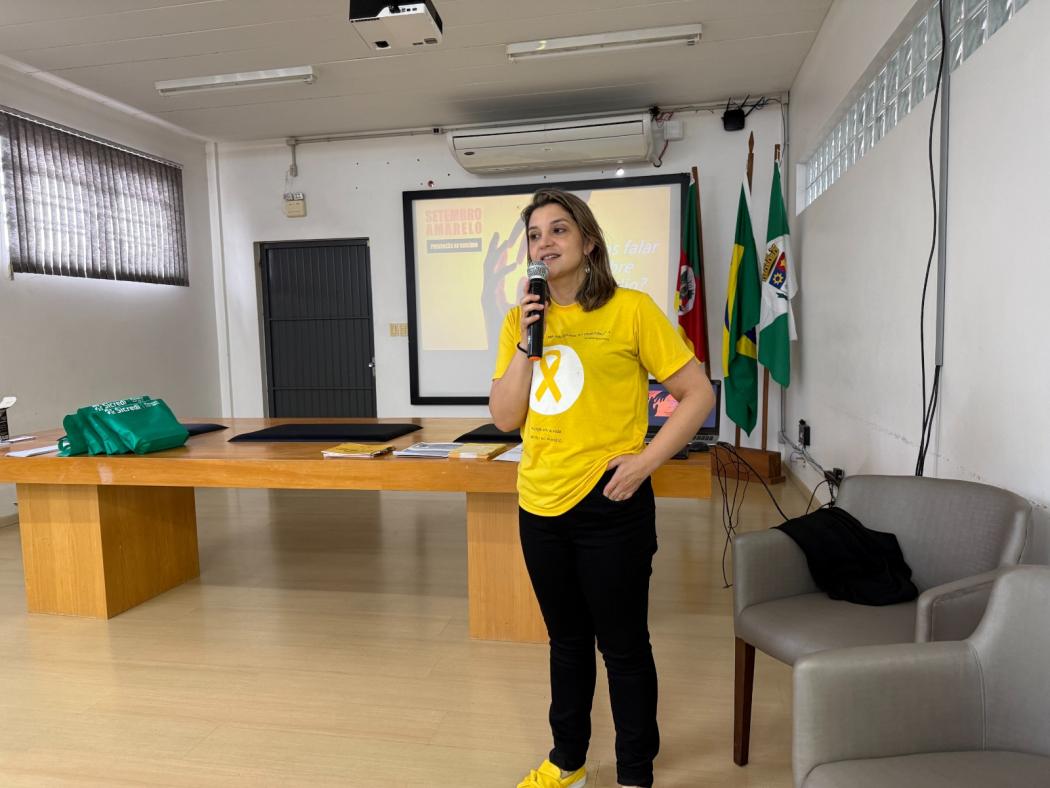 Na palestra, a psicóloga contou como se iniciaram as campanhas do Setembro Amarelo voltadas para a saúde mental. O Setembro Amarelo surgiu em 2014, no Brasil, como uma campanha nacional de prevenção ao suicídio. A escolha do mês está ligada ao Dia Mundial de Prevenção ao Suicídio, lembrado em 10 de setembro. A cor amarela foi inspirada na história de Mike Emme, jovem norte-americano que tirou a própria vida em 1994 e ficou conhecido por seu amor por carros amarelos, assim como o Mustang que possuía. Desde então, a campanha busca incentivar o diálogo, reduzir o estigma e mostrar que pedir ajuda é fundamental.