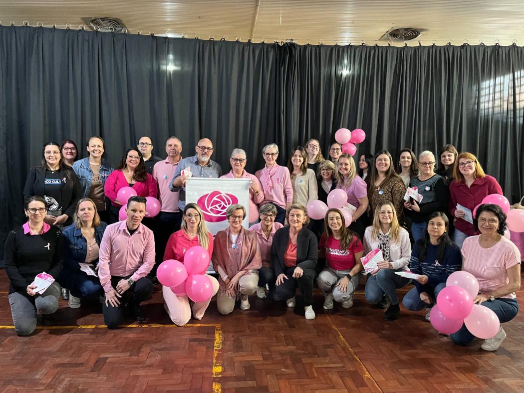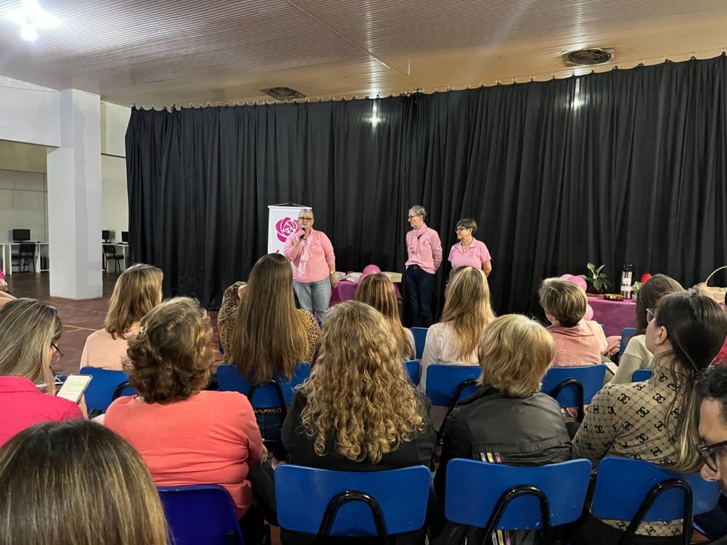 Dentro da campanha Outubro Rosa, a Prefeitura de Estância Velha realizou, na manhã desta terça-feira, dia 7 de outubro, uma palestra de conscientização sobre a prevenção ao câncer de mama. O encontro aconteceu no Auditório do Espaço Cultural Municipal e foi voltado para os servidores públicos. A presidente Dora Frank e integrantes da Liga Feminina de Combate ao Câncer conduziram a atividade abordando sobre o funcionamento da Liga, sobre histórias de luta contra o câncer e os cuidados que se tem com as pessoas que recebem essa notícia, além de alguns alertas sobre a doença.