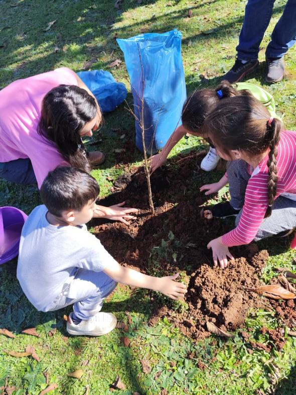 A Prefeitura de Estância Velha, na manhã do dia 10 de setembro, realizou, junto com os alunos da EMEI Rincão dos Gauchinhos, mais um plantio de um Pomar Linear. A atividade foi uma parceria entre a EMEI e a Secretaria de Meio Ambiente, Pecuária e Agricultura (SEMAPA). Com o apoio das crianças, foram plantadas mudas de árvores das espécies Araçá, Pitanga, Jabuticaba, Gabiroba, Cáqui, Bananeira, Goiaba-Da-Serra e Manacá-Da-Serra. Antes do plantio, os alunos participaram de uma conversa sobre a importância ecológica da arborização no município, logo após, os alunos apresentaram o projeto que realizaram sobre as árvores com a Professora Géssica.