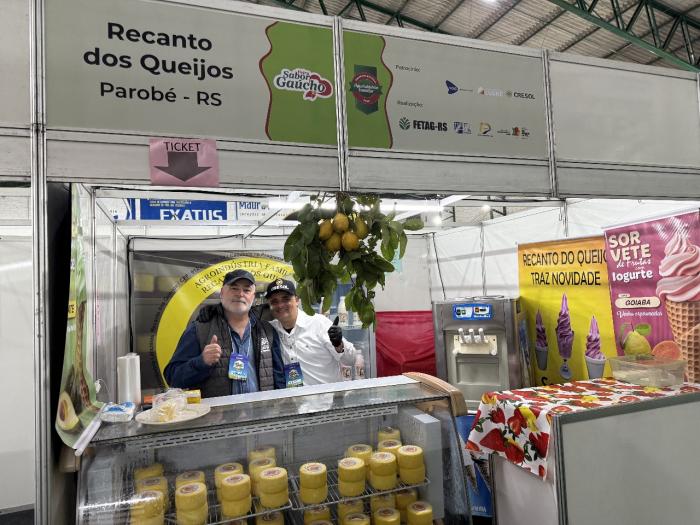 Outro expositor é o Recanto dos Queijos de Parobé, dirigido por Valdir Miguel Arnold e Sidnei dos Santos Silva, que já soma oito anos de dedicação à produção de alimentos coloniais. Com um portfólio que inclui iogurtes e queijos coloniais, a agroindústria tem se destacado pela inovação, trazendo como novidade os sorvetes à base de iogurte com frutas naturais, como goiaba e abacate, além de estar desenvolvendo um exclusivo sorvete de queijo. A participação na Feira Sabor Gaúcho foi vista como uma grande oportunidade pelos produtores. “Uma experiência muito boa para continuarmos nos desenvolvendo cada vez mais e evoluindo”, comenta Valdir.
