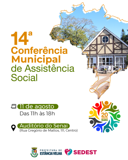 Na 14ª Conferência de Assistência Social, Estância Velha escolherá dois delegados que representarão o Município na Conferência Estadual (ainda sem data definida). O evento é aberto ao público.