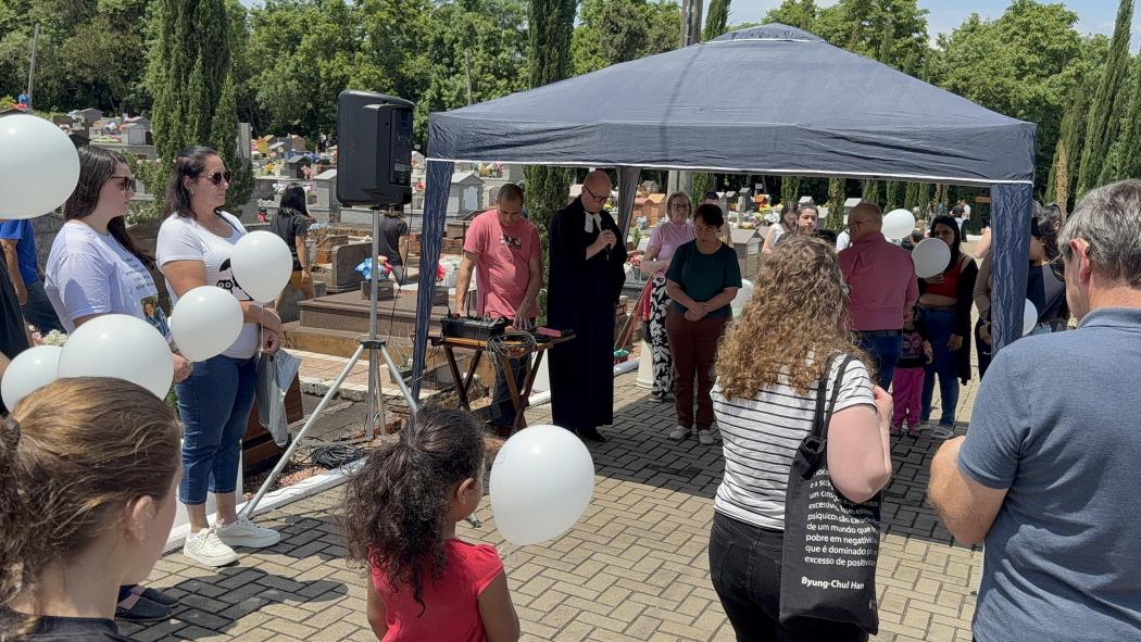 Logo após uma mensagem do pastor, foram soltos 50 balões brancos simbolizando o desejo de paz aos entes queridos que já não estão entre nós. “É um momento de homenagem mas também um momento de reflexão, que nos mostra o quanto precisamos amar as pessoas com quem convivemos diariamente”, destacou a secretária Beti Griebeler.
